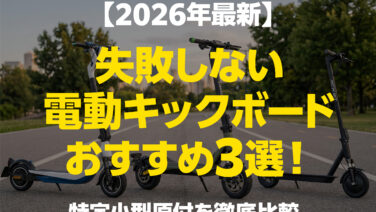 レビュー・比較 【2026年最新】失敗しない電動キックボードおすすめ3選!特定小型原付を徹底比較 「電動キックボードって種類が多すぎて、結局どれを買えばいいの?」「安物を買って失敗したくないし、かといって高すぎるのもちょっと…」法改正(特定小型原付の解禁)以降、街中で電動キックボードを見かける機会が爆発的に増えました。しかし、Amazo... 2025.04.03 レビュー・比較