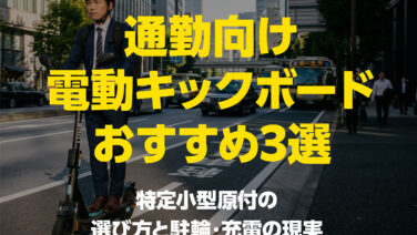 アクセサリー・メンテナンス 通勤向け電動キックボードおすすめ3選|特定小型原付の選び方と駐輪・充電の現実 電動キックボード通勤体験談を基に、メリット・デメリット、必要な準備、選び方を解説。満員電車からの解放、時短、爽快感が魅力。安全性や天候、バッテリーに注意。通勤許可や労災確認も忘れずに! 2025.06.23 アクセサリー・メンテナンスグッズグッズ・任意保険・その他レビュー・比較活用術・Q&A