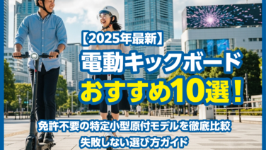 レビュー・比較 【2025年最新】電動キックボードおすすめ10選!免許不要の特定小型原付モデルを徹底比較|失敗しない選び方ガイド 2025年最新の電動キックボードを選ぶなら、法規制の確認が重要!価格帯別おすすめモデル10選では、タイヤやバッテリー性能、携帯性、安全機能別に選び方のポイントを解説。免許不要の特定小型原動機付自転車も。 2025.07.01 レビュー・比較初心者ガイド・使い方電動キックボード本体