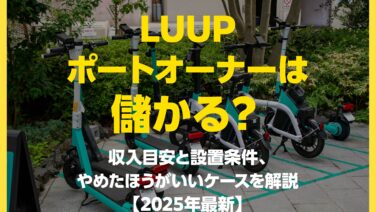 初心者ガイド・使い方 LUUPポートオーナーは儲かる?収入目安と設置条件、やめたほうがいいケースを解説【2025年最新】 初期費用0円!LUUPで空きスペースを収益化しませんか?電動キックボード市場は成長中で、免許不要の法改正も追い風。[電動キックボード投資]より手軽に始められます。今すぐLUUPでポートオーナーに! 2025.07.29 初心者ガイド・使い方