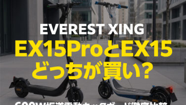 EVEREST XING EVEREST|XING|EX15ProとEX15どっちが買い?|600W坂道電動キックボード徹底比較 EX15ProとEX15徹底比較!坂道最強は?600Wモーター搭載でパワフルな走行を実現。価格、スペック、バッテリー、IoT機能を詳しく解説。坂道が多い地域での選び方も紹介。自分にぴったりの一台を見つけよう! 2025.06.01 EVEREST XINGメーカー名特定小型原付(特定小型原動機付自転車)電動キックボード本体