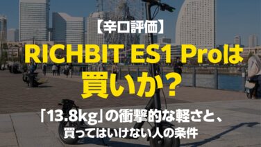 Richbit 【辛口評価】RICHBIT ES1 Proは買いか?「13.8kg」の衝撃的な軽さと、買ってはいけない人の条件 RICHBIT ES1 Proレビュー:13.8kgの超軽量!免許不要、折りたたみ可能な特定小型原付。メリットは持ち運びやすさ。デメリットは坂道でのパワー不足。通勤・通学、旅のお供に! 2025.05.24 Richbitレビュー・比較特定小型原付(特定小型原動機付自転車)電動キックボード本体