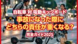 | 個人賠償責任保険 | 日常生活で他人に怪我をさせたり、他人の物を壊したりした場合の損害賠償責任を補償する保険。自転車保険や自動車保険、火災保険などに特約として付帯できる。電動キックボードの事故にも対応可能な場合がある |