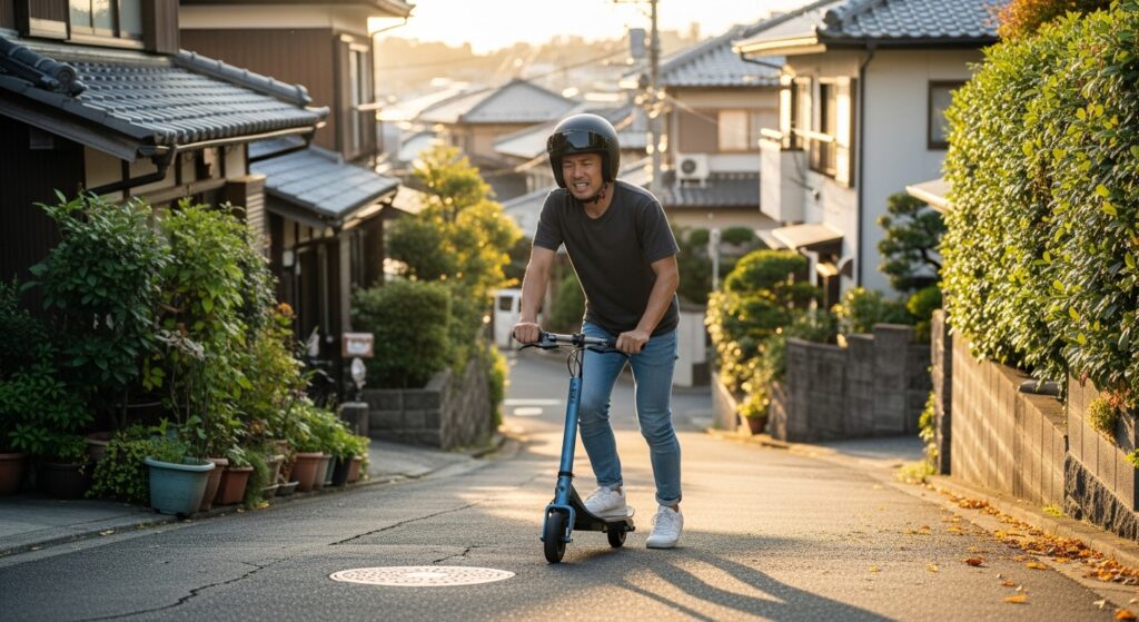 これらの要因により、実走行距離は公称値の50%~70%程度になるのが一般的です。10万円以下の安価なバッテリーセルを使っているモデルは、この乖離がさらに大きく、公称30kmとあっても「実際は10kmちょっとしか走れなかった」というケースも珍しくありません。