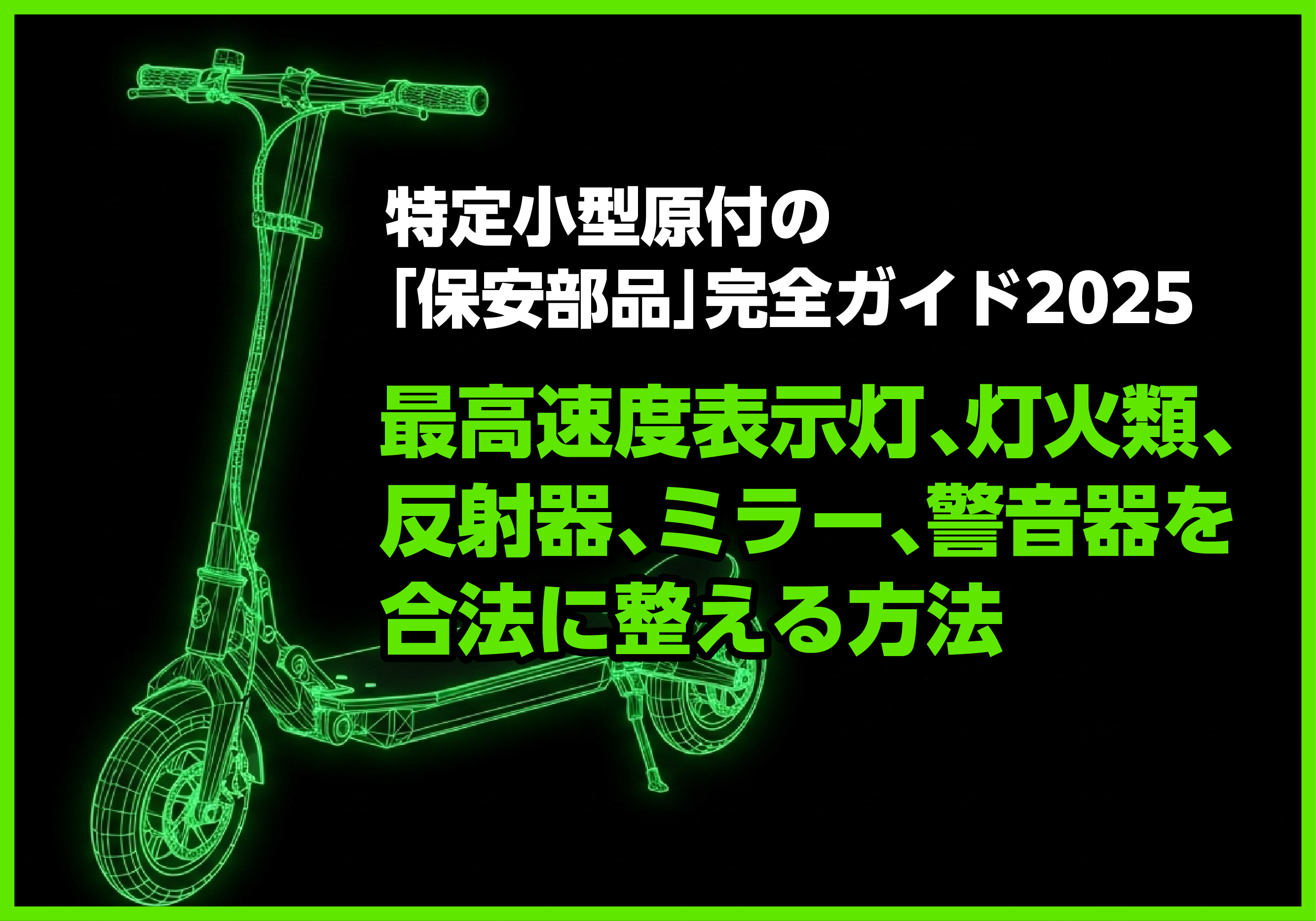 本記事は、2025年時点の公的情報に基づき、特定小型原動機付自転車(以下「特定小型」)の必須・推奨保安部品を、合法性を軸にやさしく解説します。