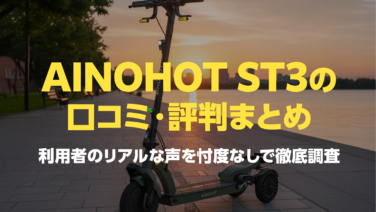 電動キックボード本体 AINOHOT ST3の口コミ・評判まとめ|利用者のリアルな声を忖度なしで徹底調査 AINOHOT ST3の口コミ・評判が気になる方必見!免許不要で注目の電動三輪キックボード。特徴のスイング機能、価格、安定性、メリット・デメリット、競合比較まで購入前に必要な情報を徹底解説。 2025.06.02 電動キックボード本体
