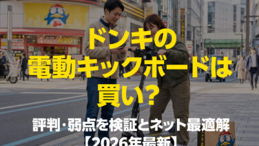 レビュー・比較 ドンキの電動キックボードは買い?評判・弱点を検証とネット最適解【2026年最新】 ドンキの電動キックボードは安いけど実際どう?リアルな評判を徹底分析!ネット限定モデルと徹底比較し、あなたに合う一台を見つけよう。坂道や航続距離で後悔しない選び方とは? 2025.11.13 レビュー・比較特定小型原付(特定小型原動機付自転車)電動キックボード本体