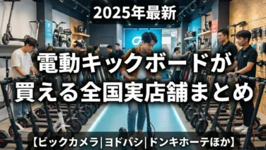 ニュース・技術動向 2025年最新|電動キックボードが買える全国実店舗まとめ【ビックカメラ|ヨドバシ|ドンキホーテほか】 「電動キックボード、高い買い物だから実物を見てから買いたい」「今日すぐに乗って帰りたいから、ドンキかビックカメラに行こうかな?」そう思って家を出る前に、一つだけ知っておいてほしい「不都合な真実」があります。学生「えっ、お店で見てそのまま買う... 2025.05.12 ニュース・技術動向初心者ガイド・使い方活用術・Q&A