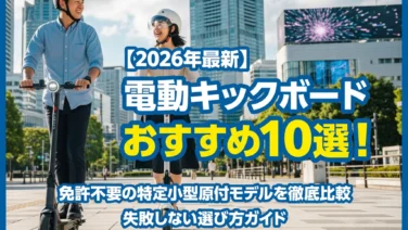 レビュー・比較 【2026年最新】電動キックボードおすすめ10選!特定小型原付(免許不要)の最強モデルはこれ 2025年最新の電動キックボードを選ぶなら、法規制の確認が重要!価格帯別おすすめモデル10選では、タイヤやバッテリー性能、携帯性、安全機能別に選び方のポイントを解説。免許不要の特定小型原動機付自転車も。 2025.07.01 レビュー・比較初心者ガイド・使い方電動キックボード本体